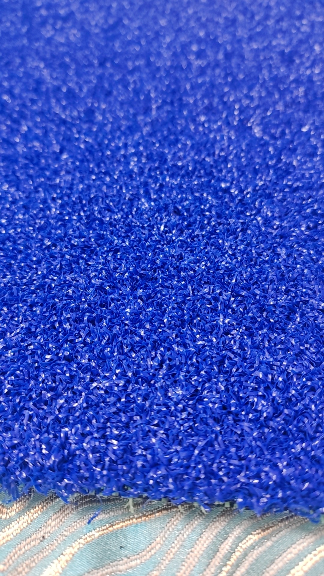 產(chǎn)品性能I 采用熱空氣變形工藝使草纖維卷曲一次成型,簇絨編織,背膠后草絲無方向性相互穿插,使得草坪毯面平整自然;